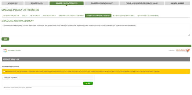 Administrators can now edit what shows for "Signature Acknowledgment".